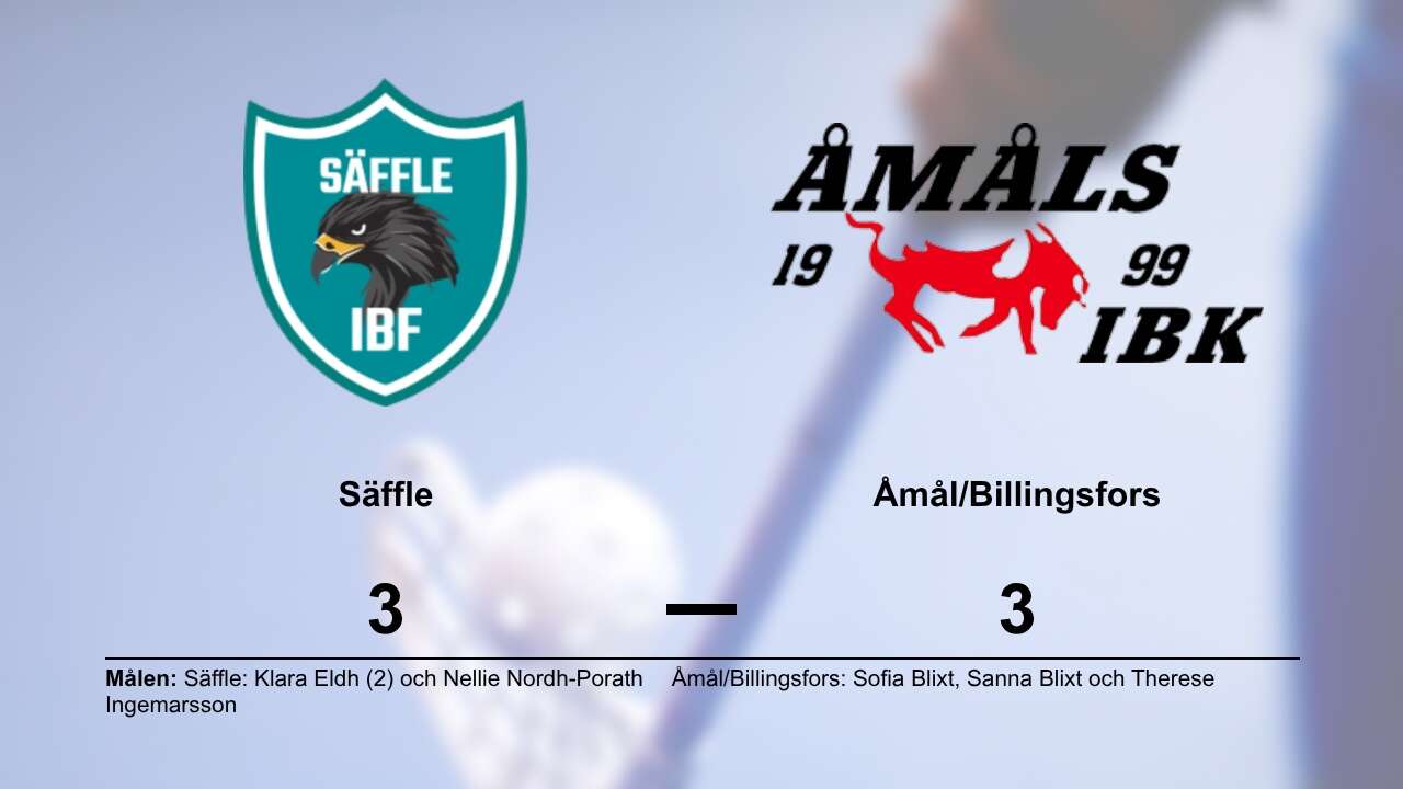 Säffle och Åmål/Billingsfors delar poäng efter spännande 3-3-match Säffle och Åmål/Billingsfors släppte poängen efter en jämn och intensiv match i division 2 Värmland dam i innebandy som nyligen avslutades på Säffles hemmaplan. Matchen slutade 3-3 efter perioderna 1-1, 0-1, 2-1…