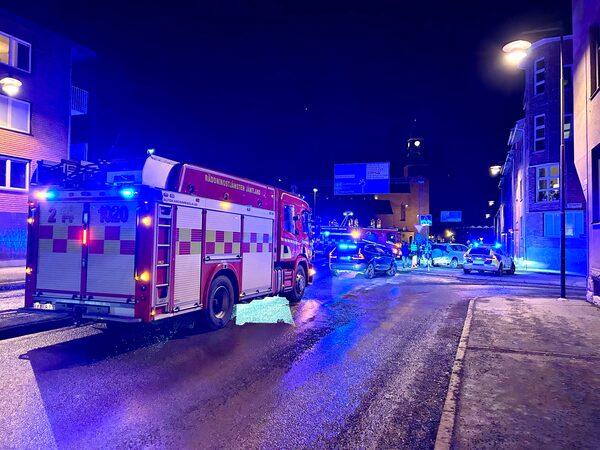 Trafikolycka stoppar mitten av Östersund vid Stora kyrkan