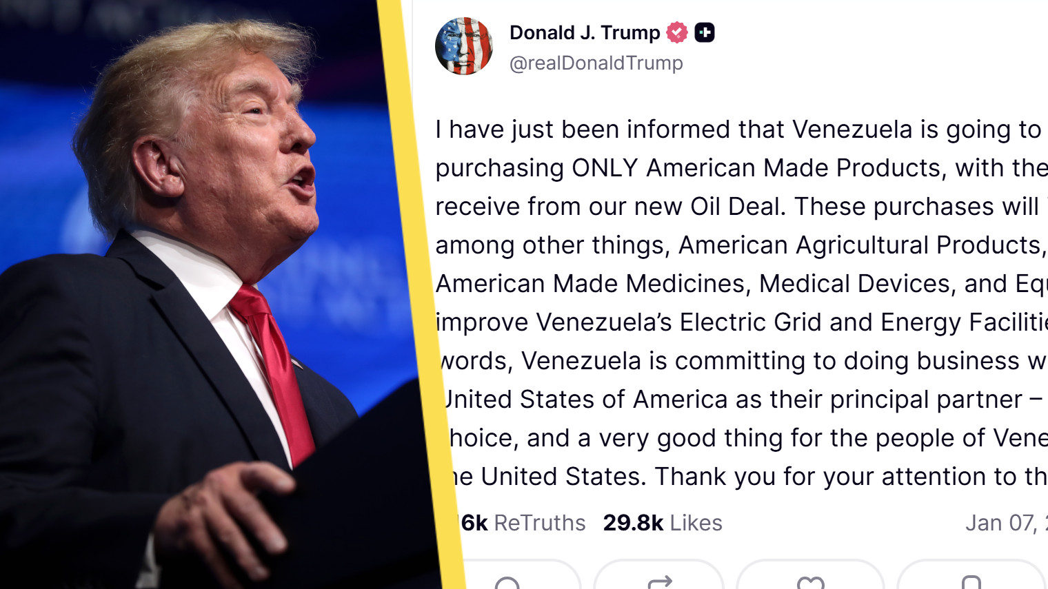 Explosionerna hördes också på andra platser i huvudstaden, däribland hamnen i La Guaira. Efter händelsen meddelade USA:s president Donald Trump att landets styrkor hade gripit Maduro och hans fru, som sedan 2020 har anklagats för narkotikahandel i USA.